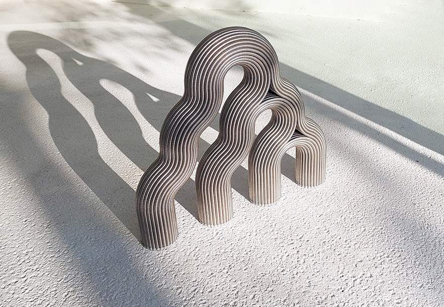 The shape is created free-formed by hand and bound by the flexible characteristics and radius of the material.