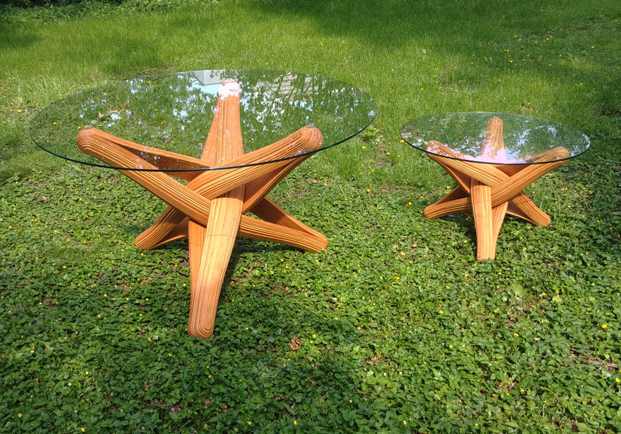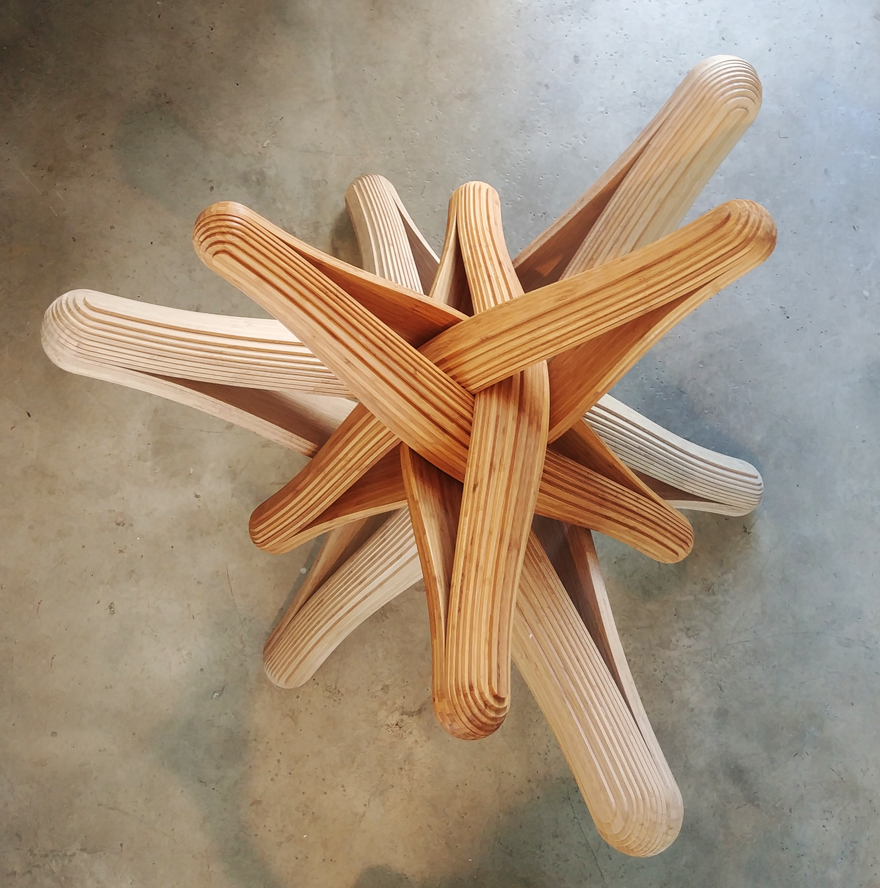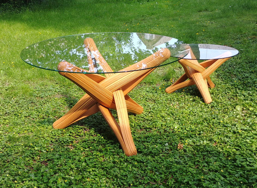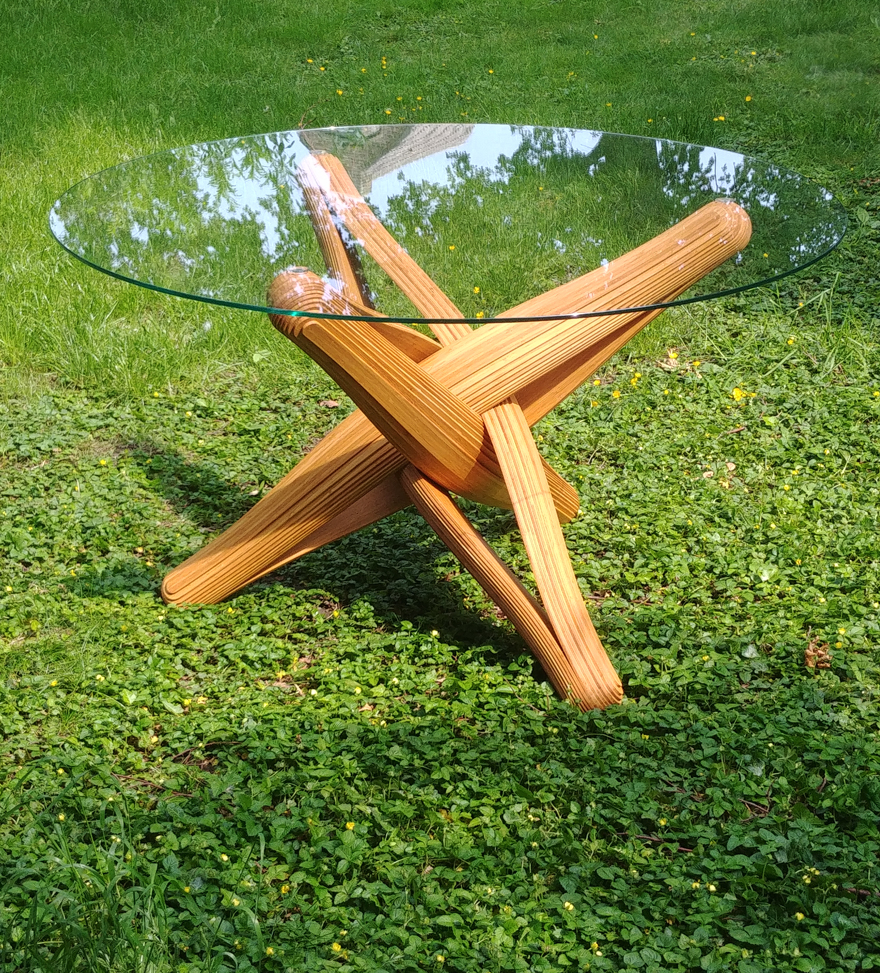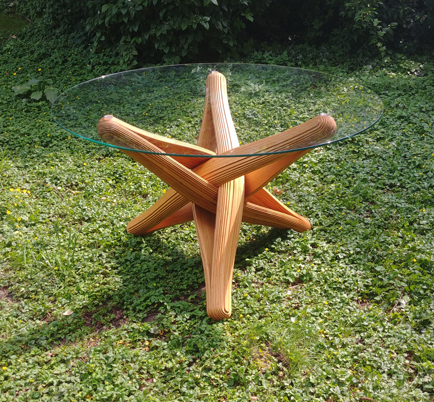 End result is a mix of nature and mathematics, of possible and impossible. A strong dynamic shape that looks different watched from different viewing points. A contemporary dining table design and a mid-century homage.