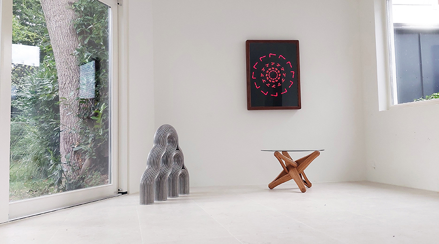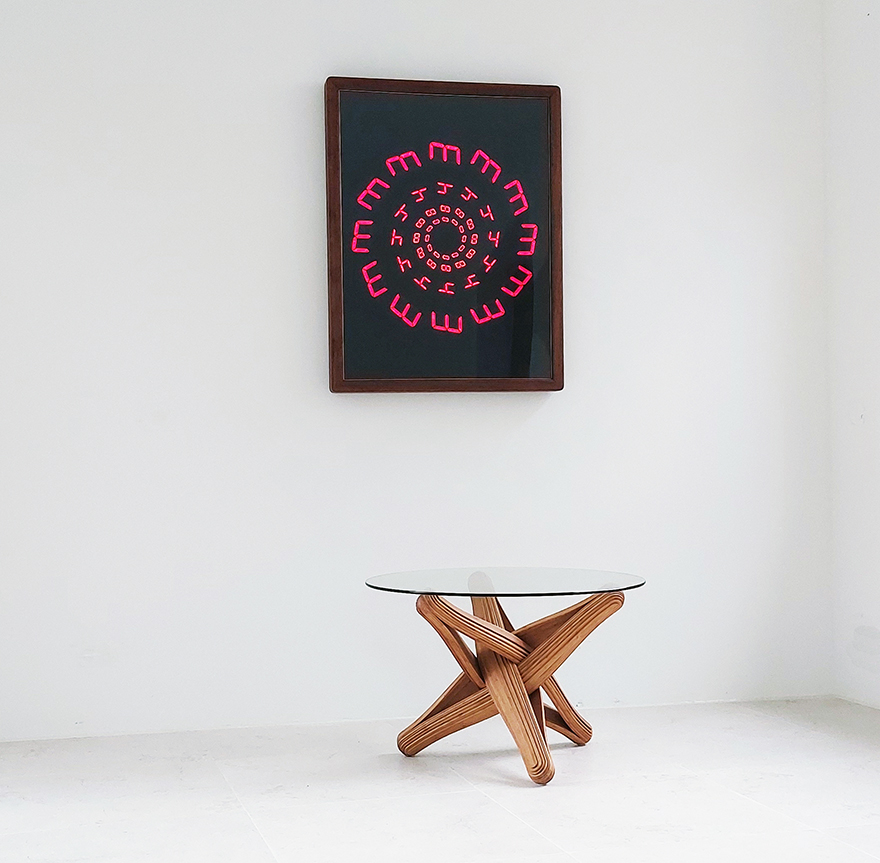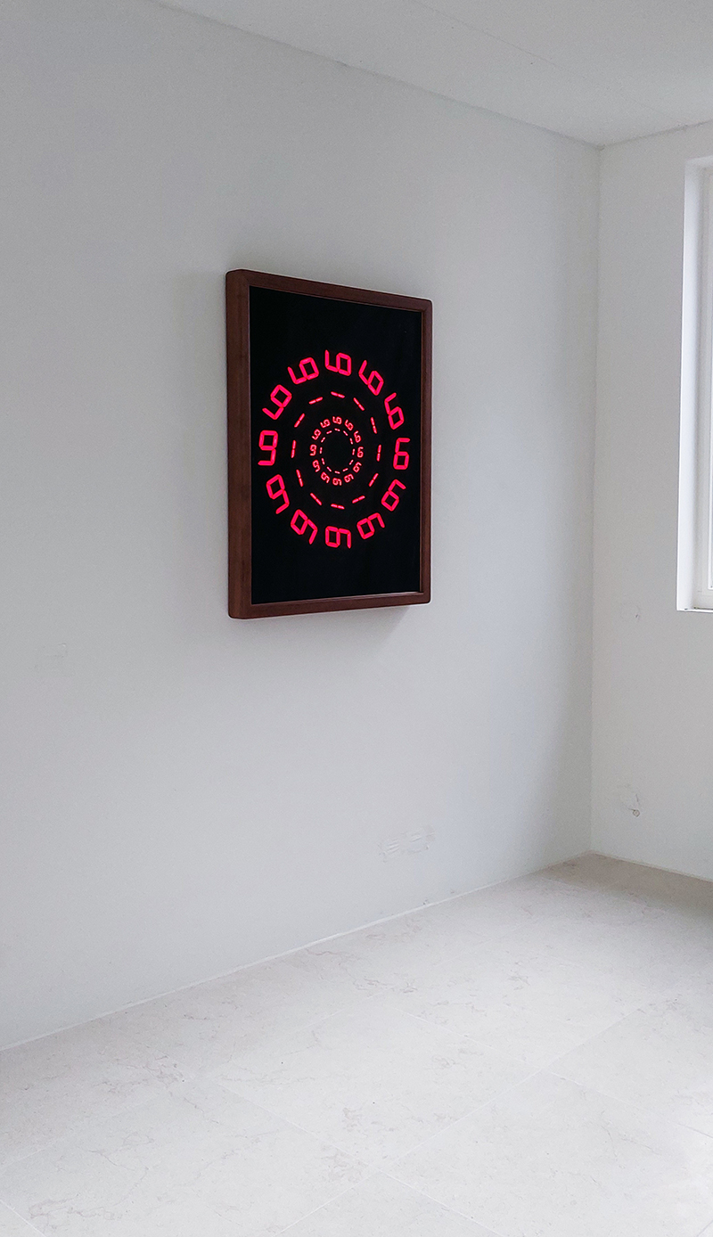 “TIMEWARP” pays homage to the first digital alarm-clocks.