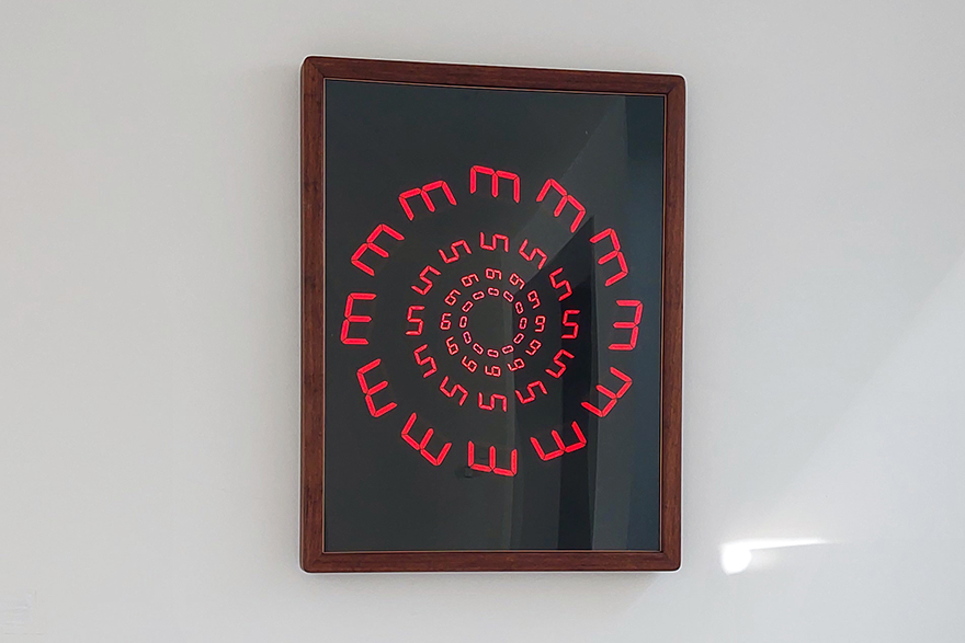 A large, physical, digital, wall-mounted, artwork that also tells the time if you look closely.