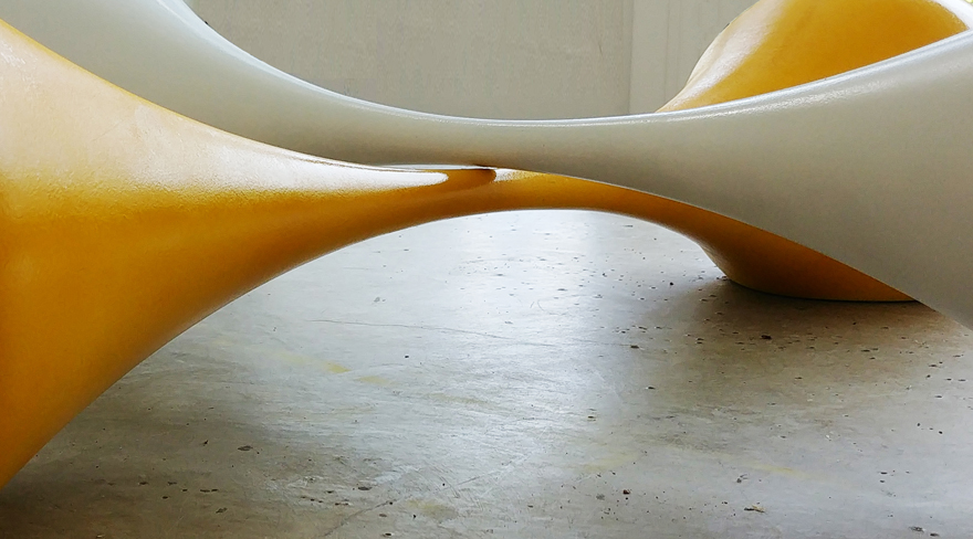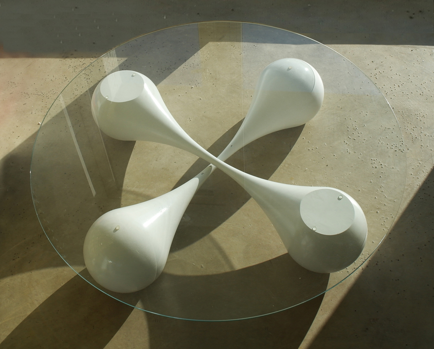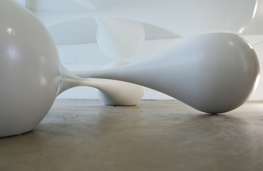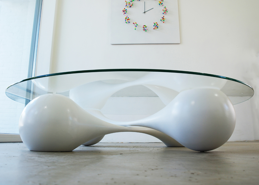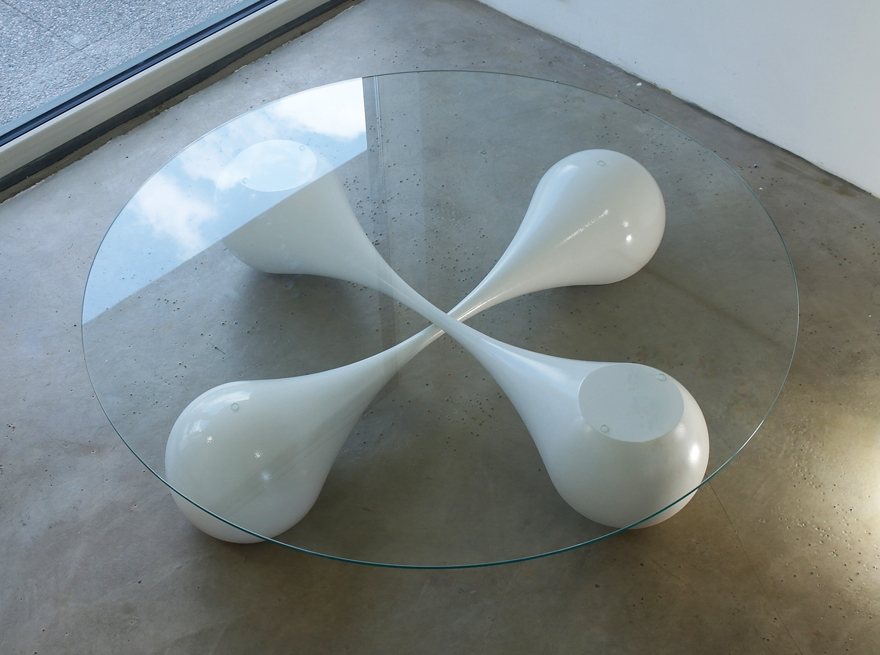 “Untouchables” coffee-table is constructed from two identical, sculptural, streamline shaped objects.